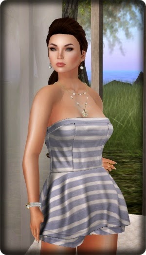 Strapless Dress & Mini Shorts Outfit - BlueStripe @ Eyelure